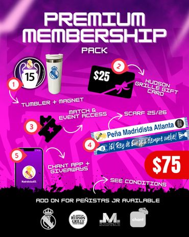 **By purchasing an ATL Peñista JR add-on with your membership pack, you are providing consent for the minor’s participation. Madridistas Atlanta Inc. will be held harmless in all cases.