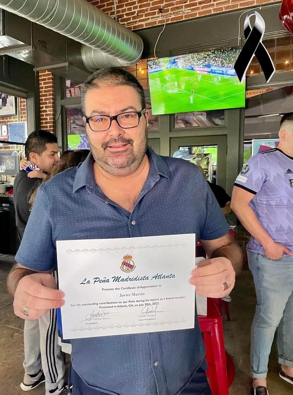 In his honor, and with the blessing of his estate, Peña Madridista Atlanta has dedicated all of our humanitarian efforts to celebrate his life, his unwavering Madridismo, and the lasting impact he made on our community. Through these efforts, we aim to carry forward Javi’s spirit of kindness and solidarity.